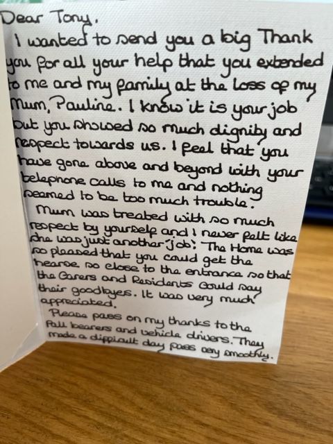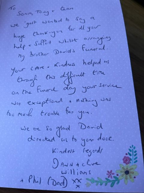 Those we have worked with have quick became friends, we would like to thank them for their kind words. We are truly grateful that they chose us as their Family Funeral Director.