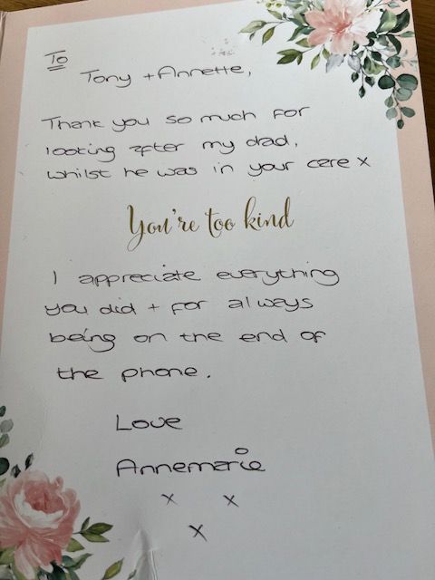 From the bottom of my heart I thank you for being there, listening to my tears and worries and for caring for my Dad while he was with you. (Also Tony you make an amazing cup of tea!)
