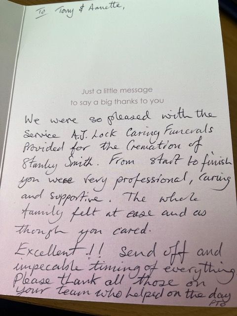 AJ Lock Caring Funerals Testimonials